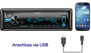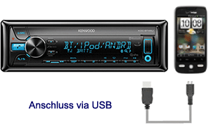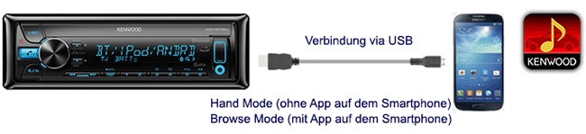 Für Smartphone-Besitzer mit Android-Betriebssystem bietet Kenwood jetzt brandneue Receiver an, die eine komfortable Übertragung der digitalen Musikdaten vom Mobiltelefon ans Autoradio ermöglichen. Das hierfür verantwortliche Übertragungsprotokoll trägt die Bezeichnung AOA 2.0 (Android Open Accessory) und ist Bestandteil des Android-OS ab Version 4.1. Es erlaubt den Kenwood-Autoradios direkt auf die Mediendateien eines Android-Handys zuzugreifen.