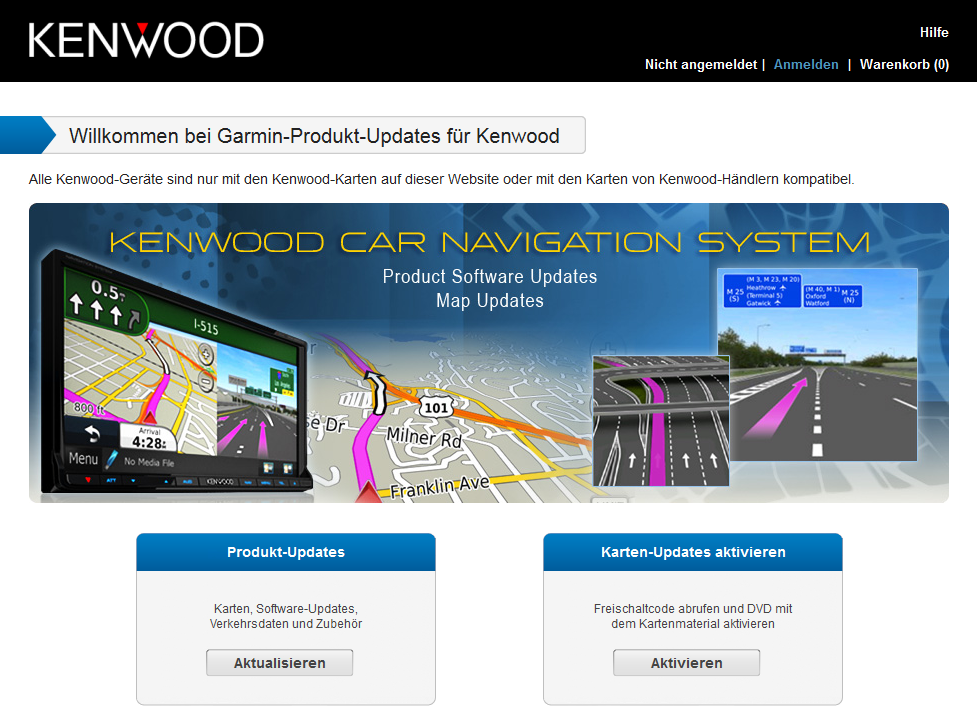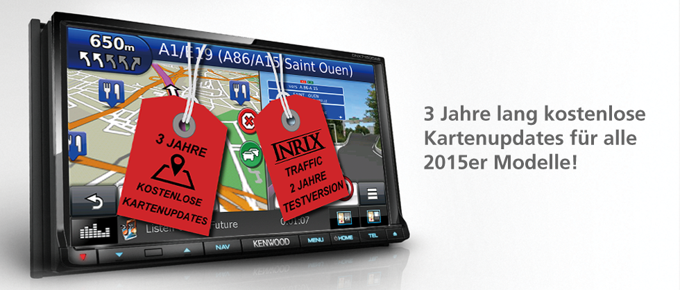 “3 Jahre kostenlose Karten-Updates” gibt es über das Garmin / Kenwood Web Portal (https://kenwood.garmin.com/kenwood/). Eine Kurzanleitung zum Online-Download des kostenlosen 3 Jahres Karten-Update über SD-Karte finden Sie hier.