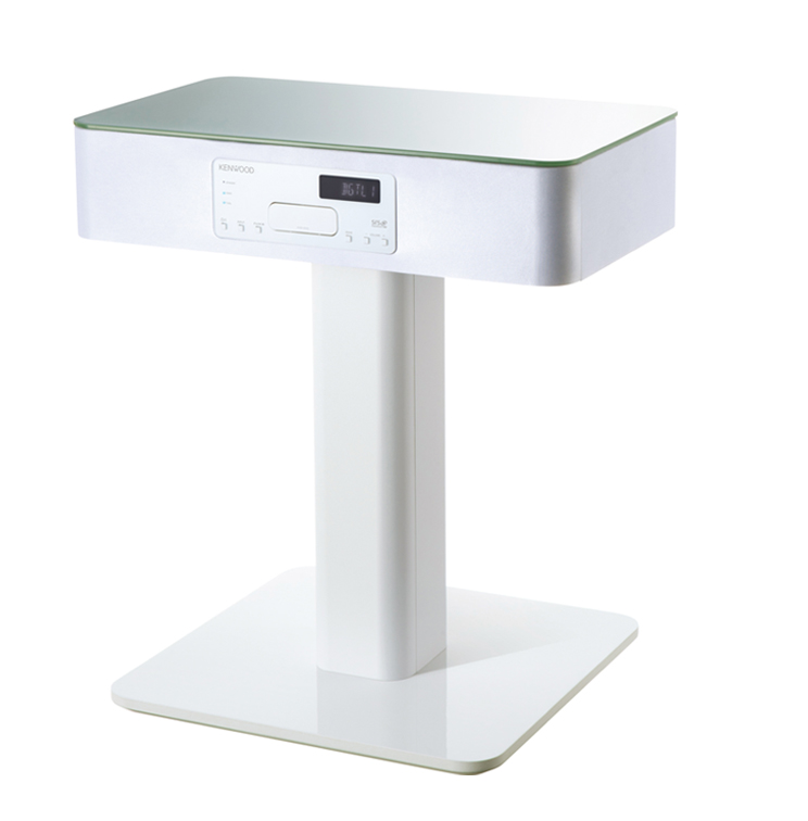 Musikfans, die ihre Lieblingstitel auf einem iPod oder iPhone gespeichert haben und diese über ein eigenständiges Audiosystem im Arbeits-, Schlaf- oder Wohnzimmer wiedergeben möchten, finden in Kenwoods neuem Klangmöbel C-BX3 den richtigen Spielpartner. Denn dieses auf einem stabilen wie eleganten Standfuß montierte Stereosystem verfügt an seiner Frontseite über eine ausfahrbare Dockingstation, die den Apple-Mobilplayer aufnimmt und dabei automatisch dessen Akku lädt. Das wahlweise in einer weißen oder schwarzen Ausführung lieferbare Ensemble lässt sich dank der obenauf liegenden Glasplatte einerseits als schmucker Beistelltisch einsetzen, andererseits auch als Standfuß für einen Flachbildfernseher verwenden.
