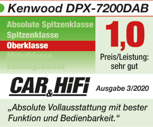 Pralle Ausstattung, hervorragende Messwerte und beste Bedienbarkeit: Das Kenwood DPX-7200DAB gehört zu den besten Autoradios, die man derzeit kaufen kann.“