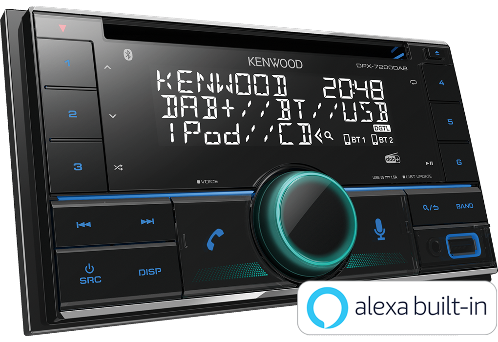 Alle 2020er-Autoradios von Kenwood, die Digitalradio DAB+ beherrschen, unterstützen auch Amazon Alexa, so auch das DPX-7200DAB. Auf Zuruf erhält man z.B. Wetterbericht, Nachrichten oder sonstige Informationen aus dem Internet. Ebenso kann man Musik per Sprache abspielen lassen oder Einkaufslisten anlegen. Nach Druck auf die Mikrofontaste hört Alexa zu und liest anschließend die gewünschten Informationen vor oder spielt Musik von Amazon Music, Spotify oder Internetradio ab. Auch Verkehrsmeldungen kann man so abrufen.