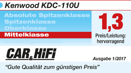 Das Kenwood KDC-110U bietet eine sehr solide Performance und wird zum äußerst günstigen Preis angeboten. Damit erhält es unsere Empfehlung für Preis- und Qualitätsbewusste.“