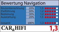 Im Test wählte das DNX5220 die Routen meist optimal, die Sprachansagen kamen ausführlich und pünktlich. Selten verwirrte die Frauenstimme mit einer verspäteten Ansage. Straßennamen werden ausgesprochen (Text-to-Speech), was die Orientierung in der Stadt erleichtert. Und dank TMC und TMC-Pro werden Besitzer dieses Kenwood-Navis selten in größeren Staus landen."