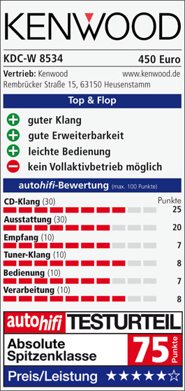 Fazit: Stilvoller Auftritt, gute Ausstattung, natürlicher Klang – beim Kenwood KDC-W8534 handelt es sich um einen feinen Allrounder.