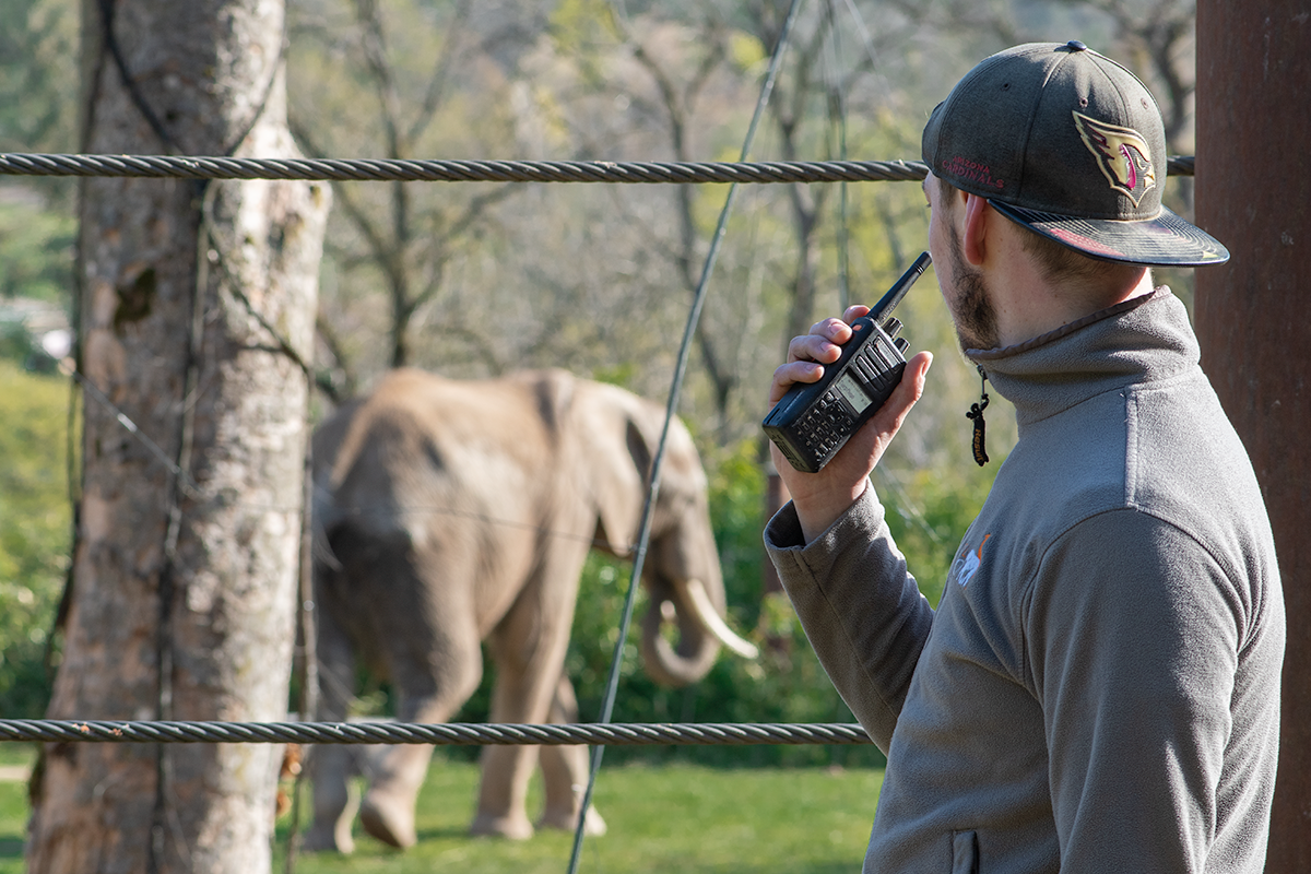 Innerhalb einer Tiergruppe verfügen die Tierpfleger über ein bis zwei Handfunkgeräte.