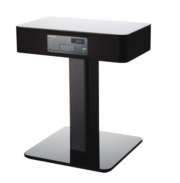 Musikfans, die ihre Lieblingstitel auf einem iPod oder iPhone gespeichert haben und diese über ein eigenständiges Audiosystem im Arbeits-, Schlaf- oder Wohnzimmer wiedergeben möchten, finden in Kenwoods neuem Klangmöbel C-BX3 den richtigen Spielpartner. Denn dieses auf einem stabilen wie eleganten Standfuß montierte Stereosystem verfügt an seiner Frontseite über eine ausfahrbare Dockingstation, die den Apple-Mobilplayer aufnimmt und dabei automatisch dessen Akku lädt. Das wahlweise in einer weißen oder schwarzen Ausführung lieferbare Ensemble lässt sich dank der obenauf liegenden Glasplatte einerseits als schmucker Beistelltisch einsetzen, andererseits auch als Standfuß für einen Flachbildfernseher verwenden.