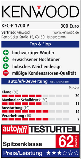 Im Klangcheck spielte das Kenwood sehr ausgewogen und bot ein stimmiges, angenehmes Gesamtbild. Der Bass hätte zwar etwas mehr Punch bieten dürfen, doch dafür waren auch höhere Pegel kein Problem. Der spritzig-perlende Hochtöner gab sich ohne Allüren, so dass es unterm Strich sogar mit dem hervorragenden (…) gleichzog.